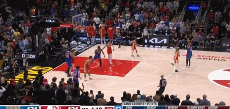 >这就是球星!布伦森弧顶迎着防守命中领先三分球