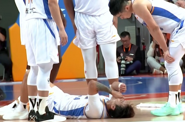 >痛苦倒地!赵睿争球被威廉姆斯打到下巴 缓了很久