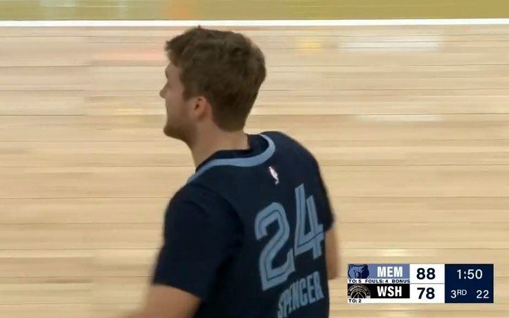 >奇才离谱5分钟得分荒!卡姆·斯潘塞一条龙上篮 灰熊轰出19-0!