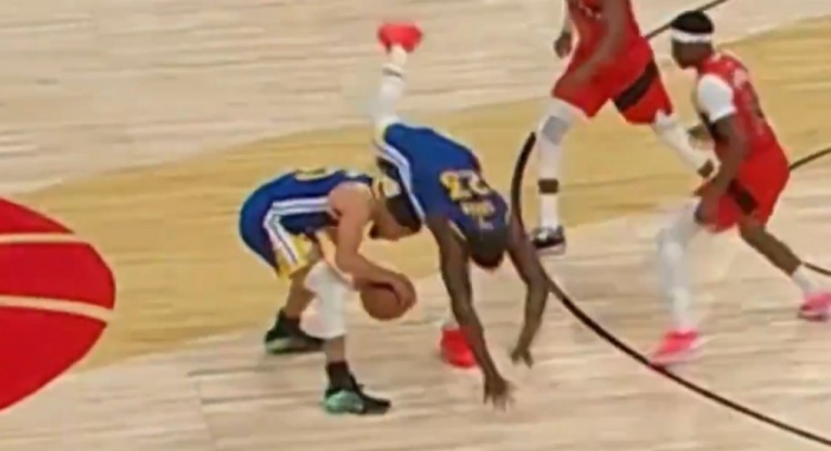 全责💀追梦准备给库里掩护 没交流好追尾从库里身上飞出去了