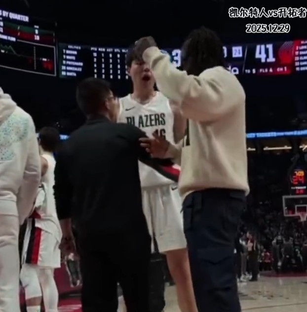 直播吧12月29日讯 今日开拓者114-108主场战胜凯尔特人,比赛中的一次暂停时朱·霍勒迪对杨瀚森进行了指导。