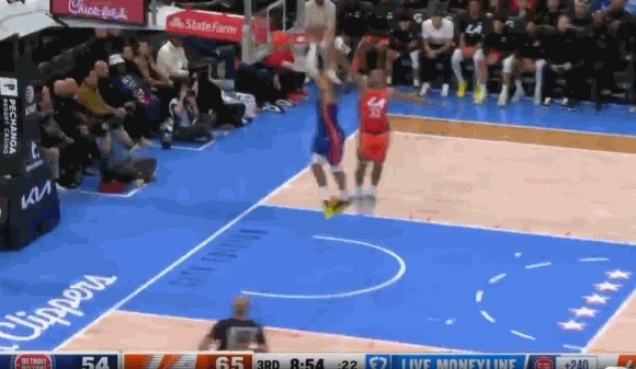 >发力追分了!康宁汉姆突破+反击扣篮带队打出12-0追到只差9分