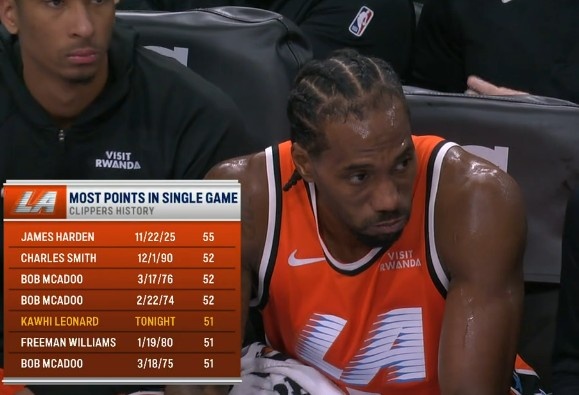快船队史七场单场51+ 两场发生在本赛季:哈登55+小卡目前51