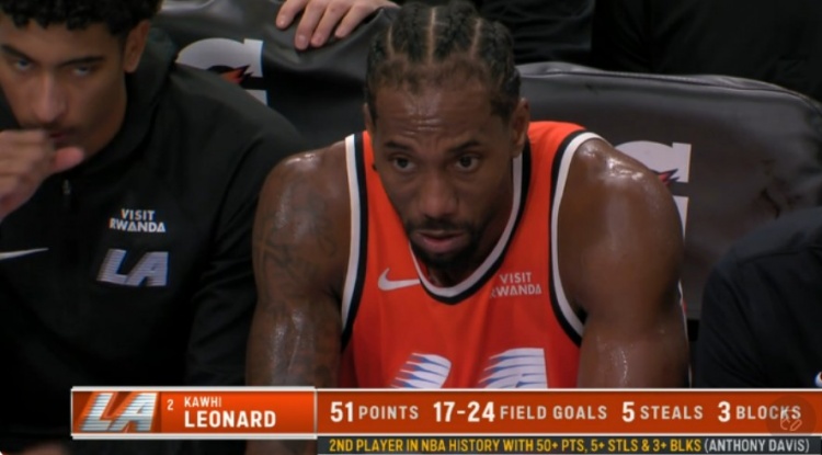 攻防一体!莱昂纳德单场至少50分5断3帽 NBA历史第二人&比肩浓眉