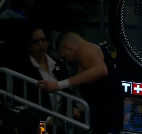 >约基奇受伤后疼得后滚翻 起身后扶着护栏走回更衣室&左脚不能承重