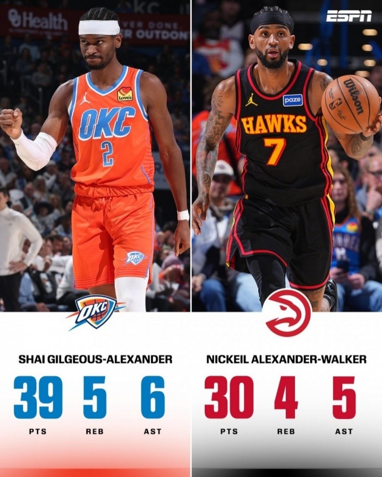 表哥亚历山大24中15,三分5中2,罚球7中7砍下39分5篮板6助攻2抢断;表弟亚历山大-沃克24中11,三分14中6,罚球3中2砍下30分4篮板5助攻2抢断1盖帽。