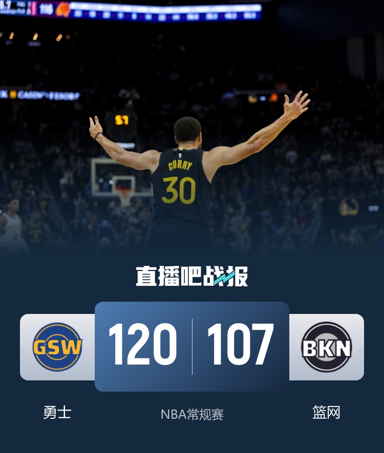 首节之争篮网在小波特的带领下以18-8率先发起攻势,勇士稍显慢热但后程发力很快追至2分结束第一节争夺;次节双方开启拉锯势均力敌,篮网方面9人轮换大部分人都能够做出贡献,勇士则开启13人轮换不断尝试阵容,勇士末段8-3的小高潮帮助他们去的2分领先进入下半场。休息归来双方继续拉锯都占不到便宜,不过第三节末至第四节初勇士抓住机会送出跨节15-5的攻势拉开比分占据上风,末段面对篮网的反弹,库里和理查德的连续得分将领先扩大至10分杀死比赛。最终,勇士客场击败篮网拿下比赛。
