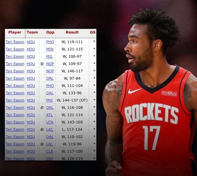 >乌度卡你看到了吗?伊森近17场首发出战的比赛中 火箭战绩16-1!
