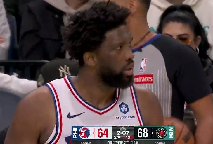 >积极性可嘉!韦尔斯上篮被恩比德大帽 后者还飞身倒地救球!