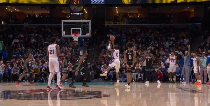 >😲这什么神仙!半场最后一攻 马克西超难躲防守拉杆三分轰进!