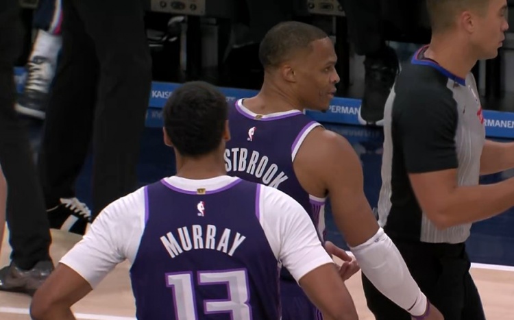 >这动作不是太好!小卡突破上篮被威少空中犯规 裁判商量后未回看