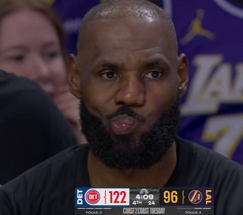 东契奇扑防邓罗被吹三分犯规 镜头照到詹姆斯在替补席撇嘴