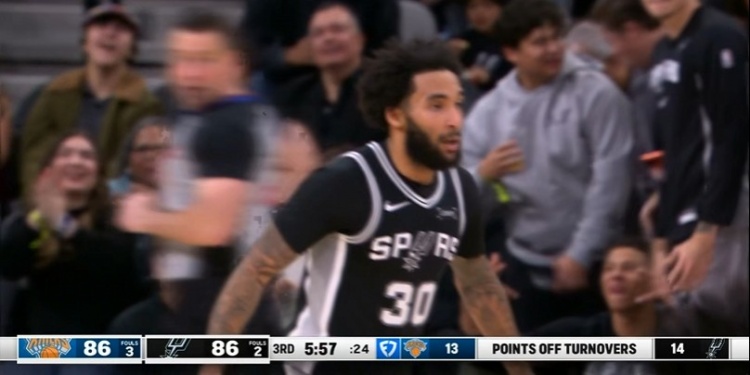 连珠炮!朱利安·尚帕尼独中3记三分 帮助马刺轰出14-0抹平分差
