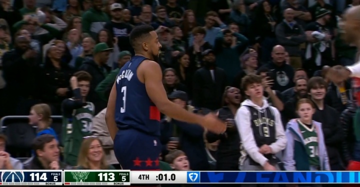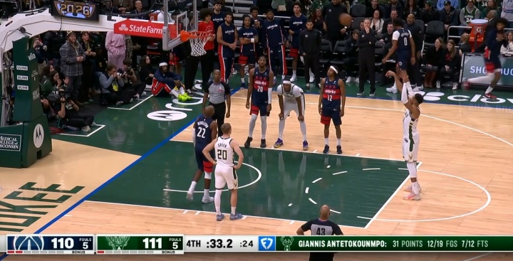 >运气差点!字母哥补篮被帽+CJ中投准绝杀 字母哥中投反绝杀没进!