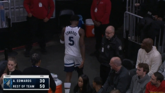 森林狼80-109落后,华子走回更衣室