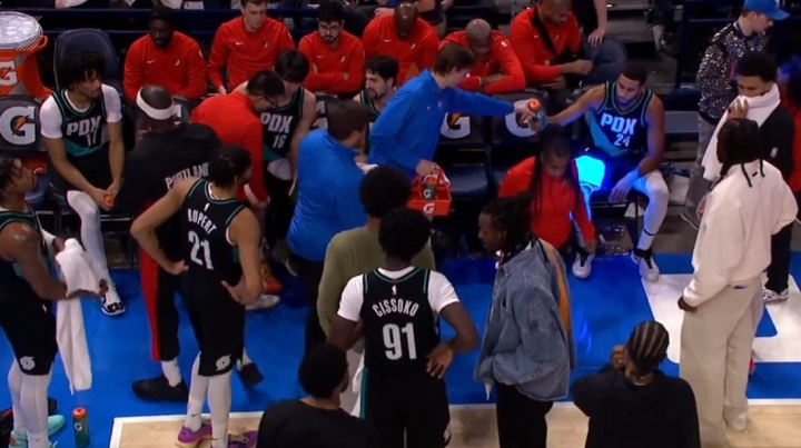 这一幕发生在昨日第三节结束后的暂停期间,杨瀚森主动和阿夫迪亚沟通细节,阿夫迪亚没怎么听懂,喊了翻译过来,解释之后两人碰拳。两人应该在聊第三节的最后一攻,杨瀚森和阿夫迪亚完成了一个配合,最终阿夫迪亚助攻穆雷进了压哨三分。