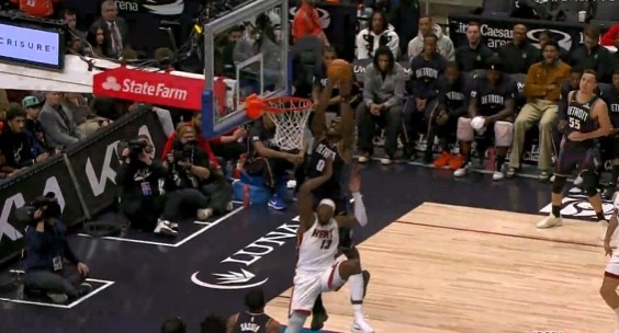 >给阿德巴约吓坏了!萨瑟送抛传 杜伦垂直上升空接炸扣