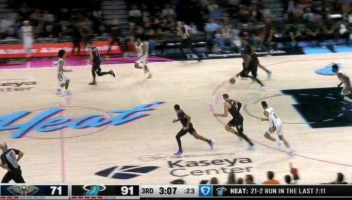 要打花了?阿德巴约接球命中三分 热火打出21-2攻势领先鹈鹕20分