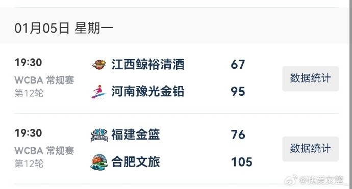 2025-2026赛季WCBA常规赛今日仅两场B组比赛。河南和合肥两队均毫无悬念在客场收获大胜。