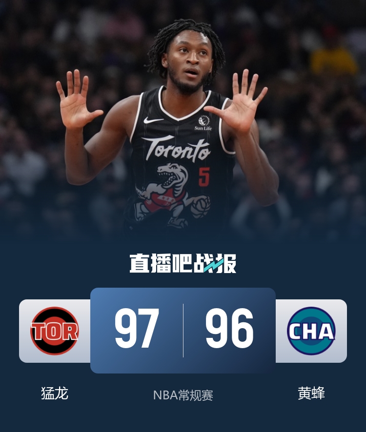 直播吧1月8日讯 NBA常规赛继续进行 ,猛龙客场挑战黄蜂队,此前猛龙22胜15负位列东部第4,黄蜂则是13胜23负排名东部第12。此役米勒等人缺阵。