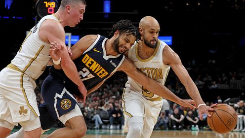 首节对决绿军开局稍显慢热小比分落后,不过后半段掘金阵容厚度的劣势导致轮换阶段落入被动,绿军在不足6分钟的时间里轰出21-12的攻势一举反超比分;次节双方开启拉锯多次互换领先,穆雷最后的三分帮助掘金扳平比分进入下半场。休息归来双方进攻双双回落,掘金9分钟里仅得11分,绿军期间稍胜一筹但优势也不大,但末节绿军突然哑火8分钟里仅得8分,掘金则送出22-8的攻势一举拿到两位数领先奠定胜局,末段掘金连续罚球不中但虚惊一场顺利收下比赛。最终,残阵掘金力克凯尔特人拿下比赛。