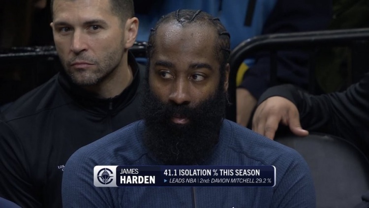 哈登本季单打占比41.1%高居联盟第一 戴维恩·米切尔29.2%第二