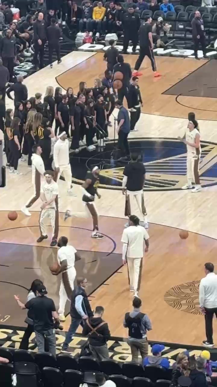 >小吧直击|库明加黑色训练衫在一众勇士中很显眼 热身积极享受篮球