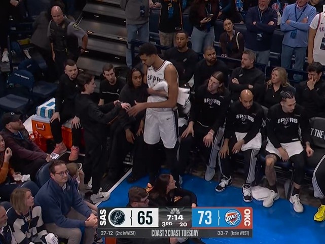 >本场第二次!SGA突破动作过大吃进攻犯规 文班倒地捂膝盖下场休息