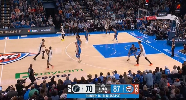 >火力压制!马刺4分半钟仅靠技犯罚球拿到1分 雷霆轰14-1扩大领先