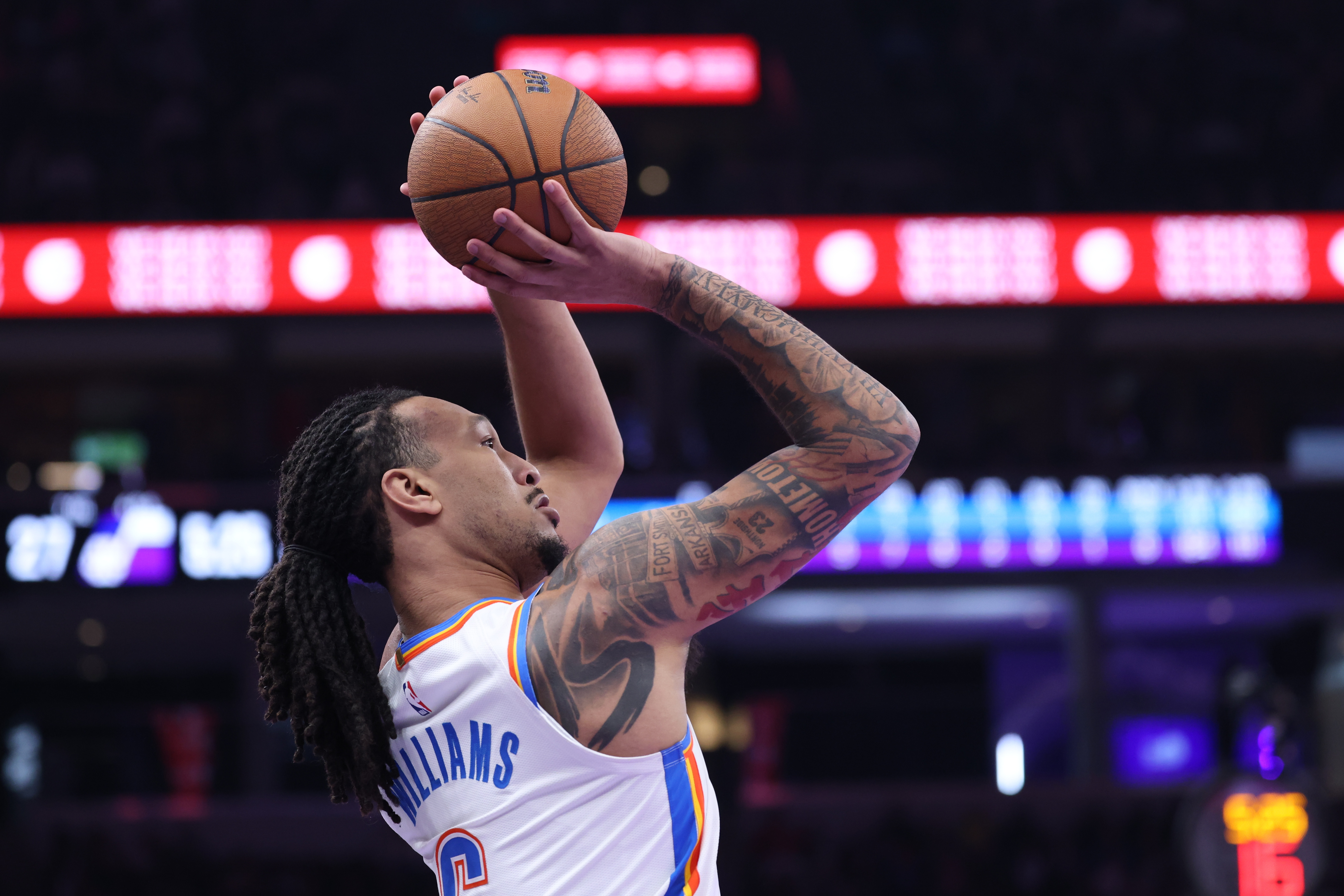 此役,雷霆内线杰林·威廉姆斯上半场进攻状态一般,但在下半场及时做出了调整。全场比赛他出战22分钟,10投4中,三分7投2中,罚球2罚1中,得到11分10篮板5助攻2盖帽的数据,没有失误,正负值+30全场最高。