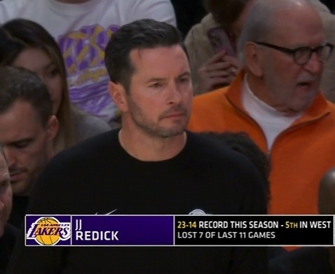 >近况不佳!雷迪克率湖人23胜14负西部第5 但最近11场7负