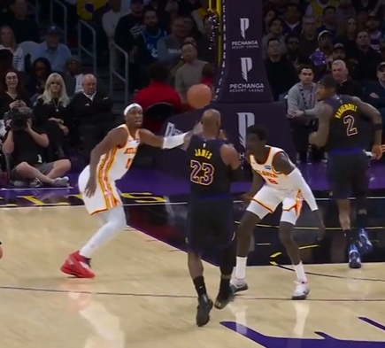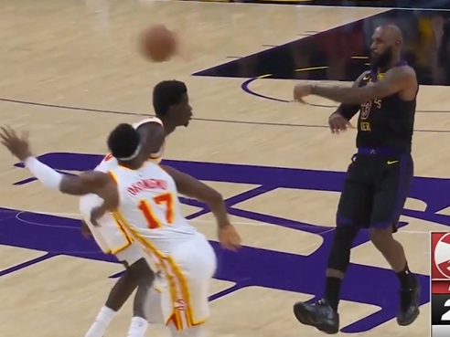 >我勒个骚邦!詹姆斯左手重传直塞 范德彪转头就接到球轻松上篮