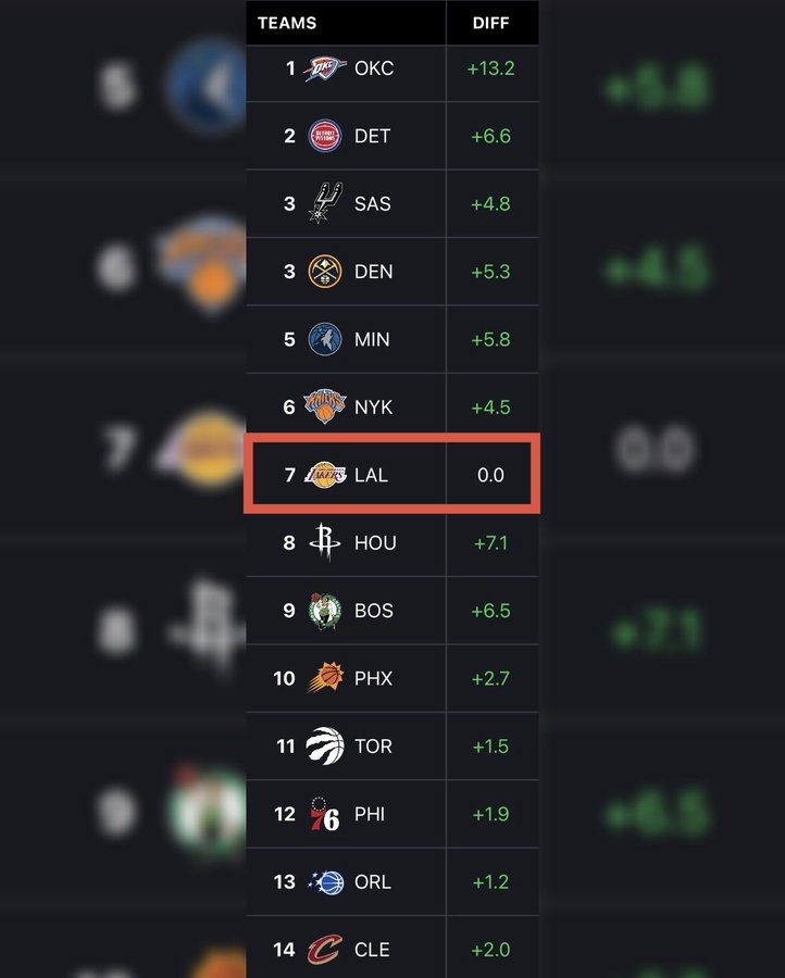 >还是尴尬~湖人今天大胜25分后 赛季净胜分来到+1 再次为正