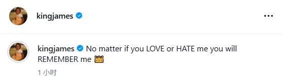 >詹姆斯更新IG:你爱我也好 恨我也罢 你终将会记得我👑