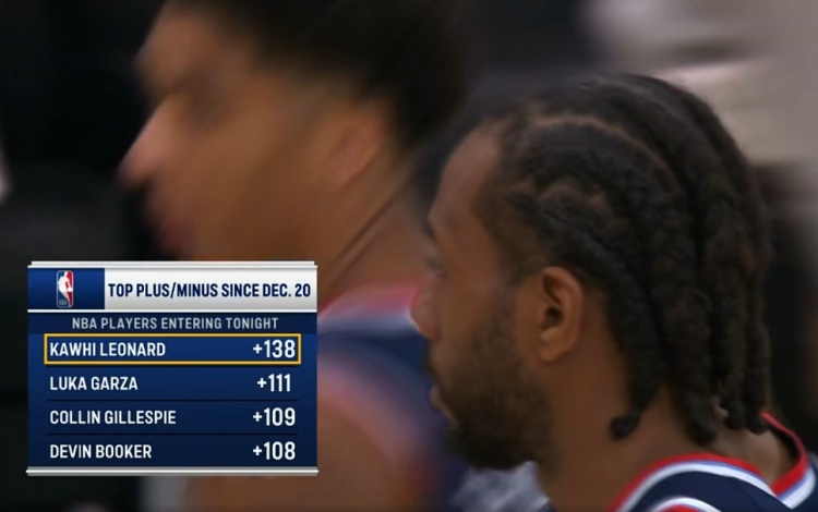 12月20日至今正负值:小卡+138第1 加尔扎第2 吉莱斯皮第3布克第4
