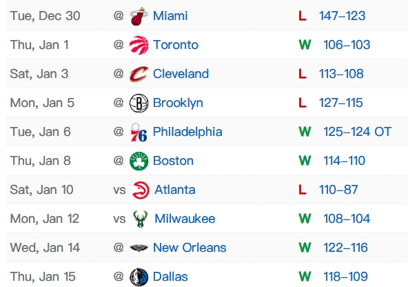 自约基奇12月30日受伤以来,掘金取得了6胜4负的战绩(含12月30日不敌热火)。