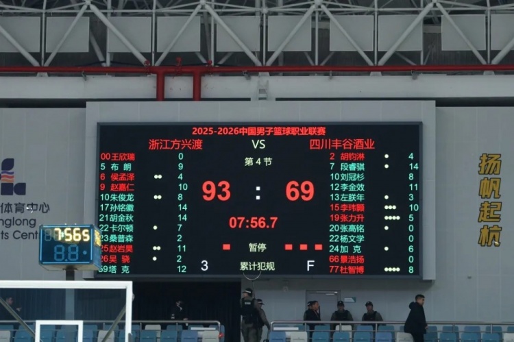 CBA常规赛第15轮,浙江方兴渡主场迎战四川丰谷酒业。首节两队打得有来有回,随后孙铭徽和布朗连续砍分,带队打出进攻小高潮,一举将分差拉大到两位数。浙江方兴渡三节结束时已经领先到20分,末节比赛成为两队练兵时间。最终,浙江方兴渡以93-69战胜四川丰谷酒业。浙江方兴渡已经实现对四川丰谷酒业酒业的六连胜。