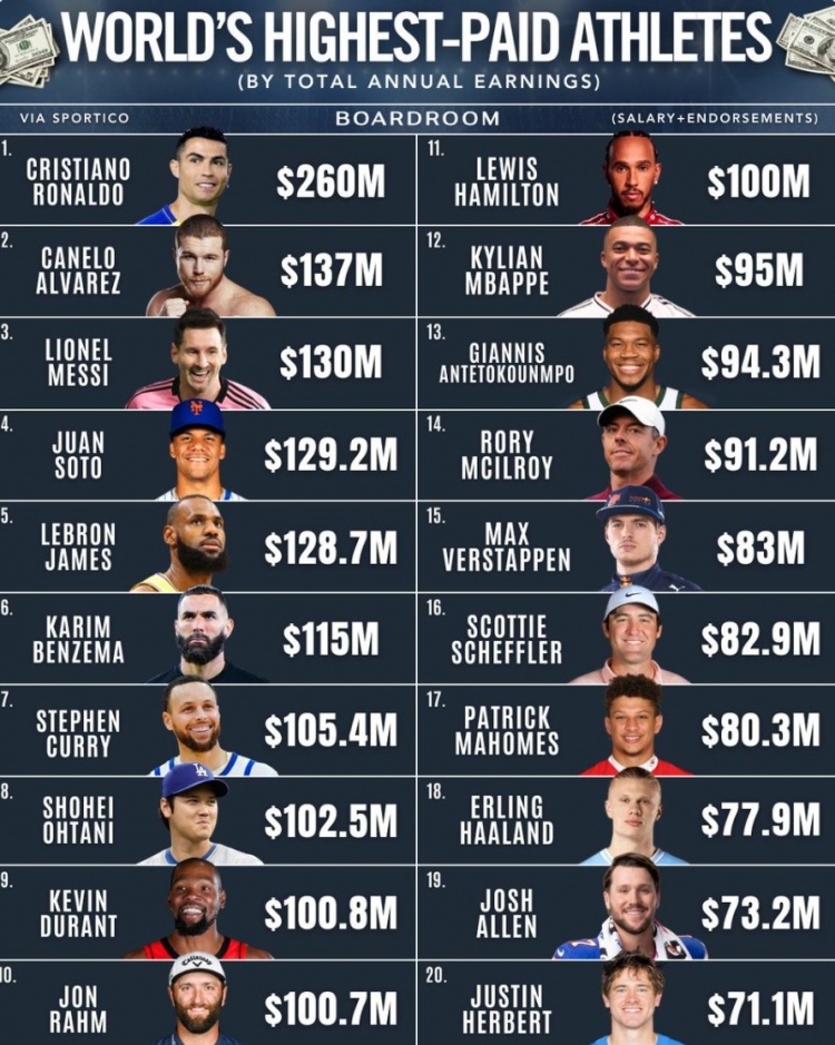 1、C罗:2.6亿美元