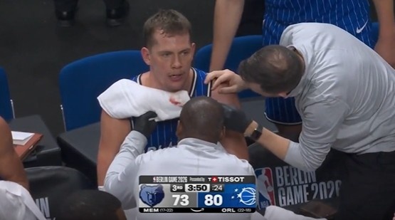 >很拼!大瓦格纳下巴被小贾伦肘出血 场边止血后继续杀伤罚球