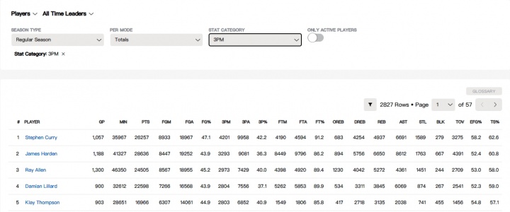 >克莱职业生涯命中2805记三分 却只出手了1806记罚球