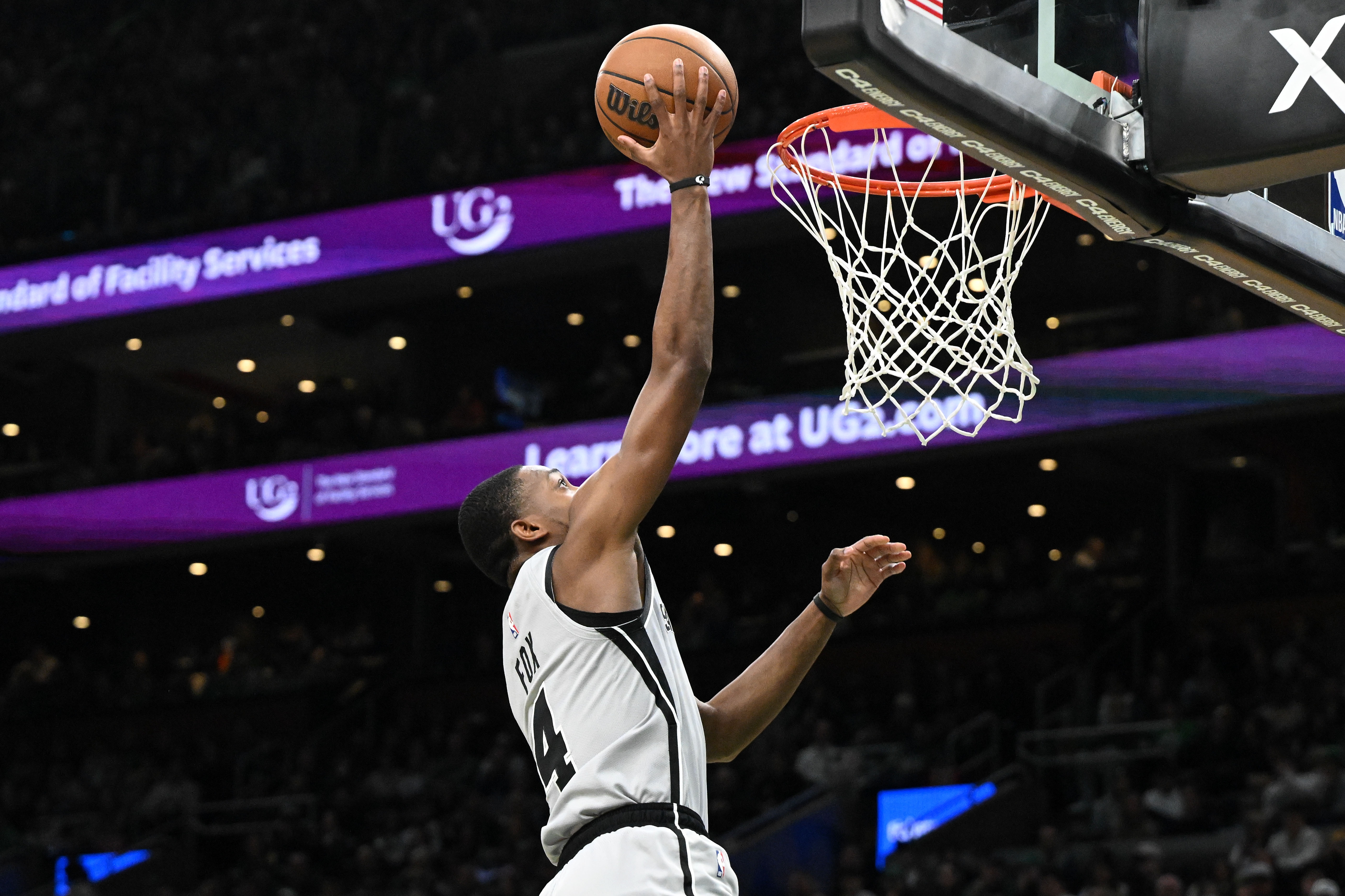 马刺后卫福克斯开局表现相当神勇,他首节独得12分帮助马刺取得领先,不过第二节没有什么发挥。