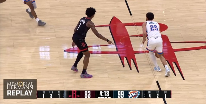 申京失误后雷霆回场违例漏吹,乌度卡向裁判投诉吃T。