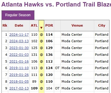 据统计,开拓者在主场对阵老鹰已经豪取九连胜,这波连胜开始于2018年1月6日。