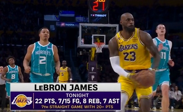 常青树!詹姆斯连续7场得分20+ 本场已砍22分8板7助