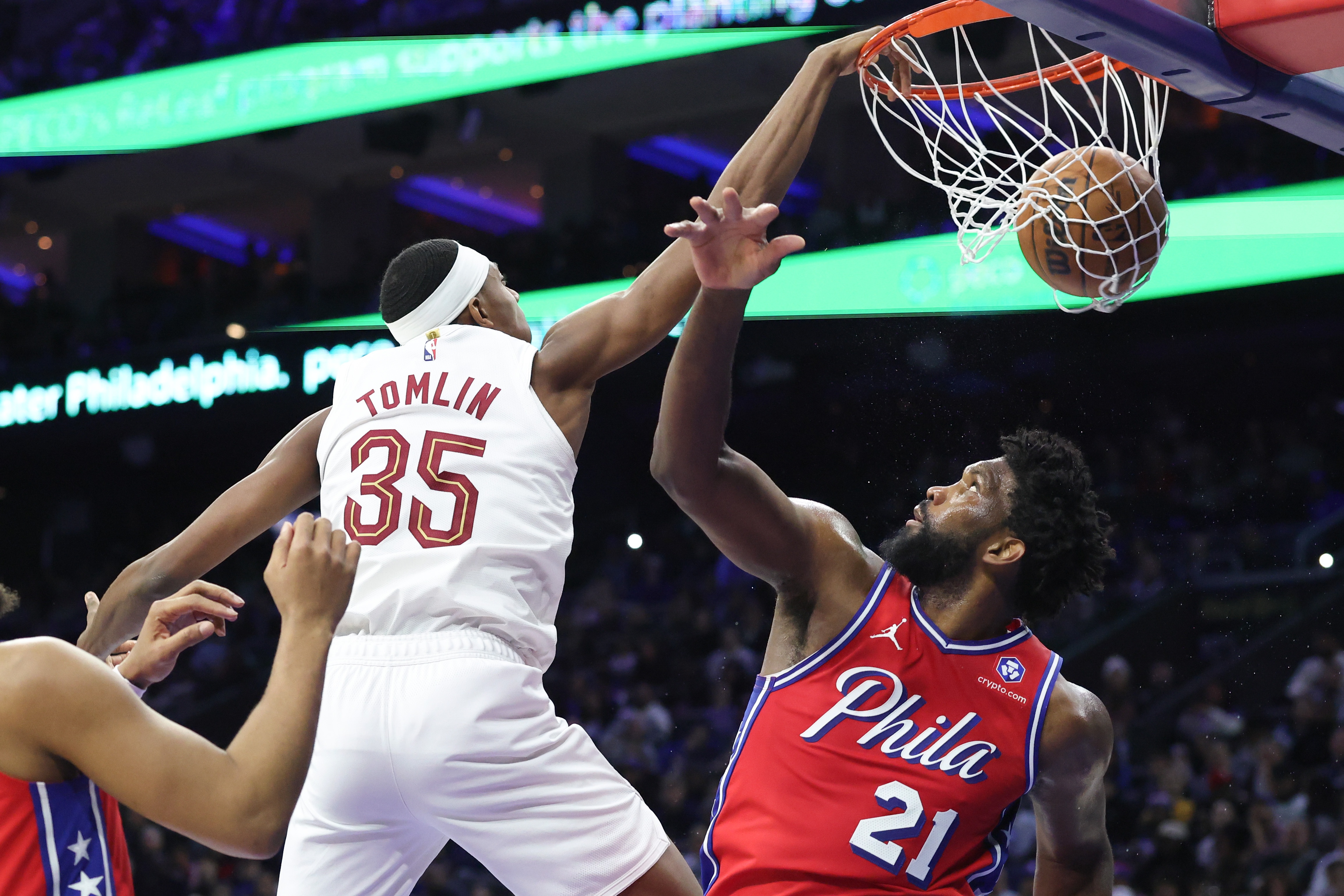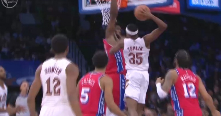 >暴力美学!汤姆林切入单臂抡圆隔扣恩比德
