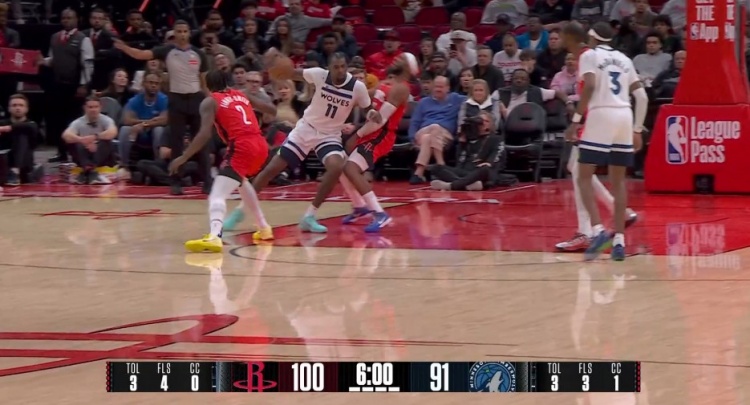 赚到!奥科吉被里德顶翻吹防守犯规 火箭挑战成功改进攻犯规