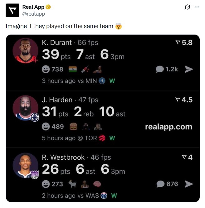 美媒晒杜兰特&威少&哈登今日数据:想象一下 若他们还在一起打球