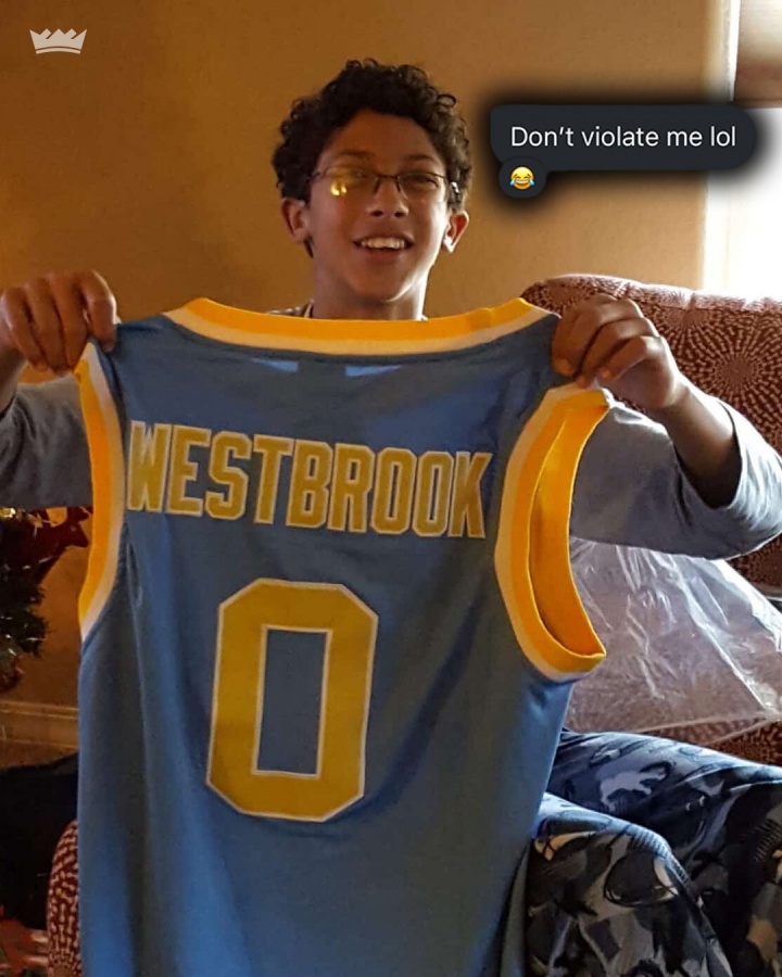 早就是你的人了!国王晒克利福德手拿威少球衣童年照:别欺负我啊
