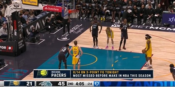 尴尬!步行者三分前14投0中 联盟本赛季最多
