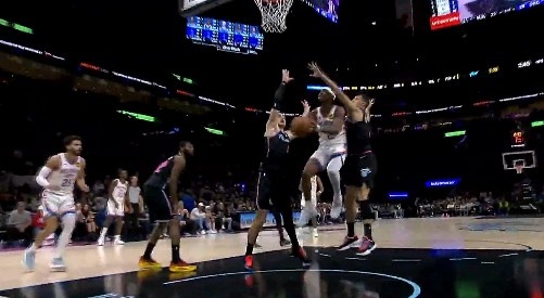 >海底捞月!亚历山大在两人合围下超级拉杆 低手挑篮打板命中